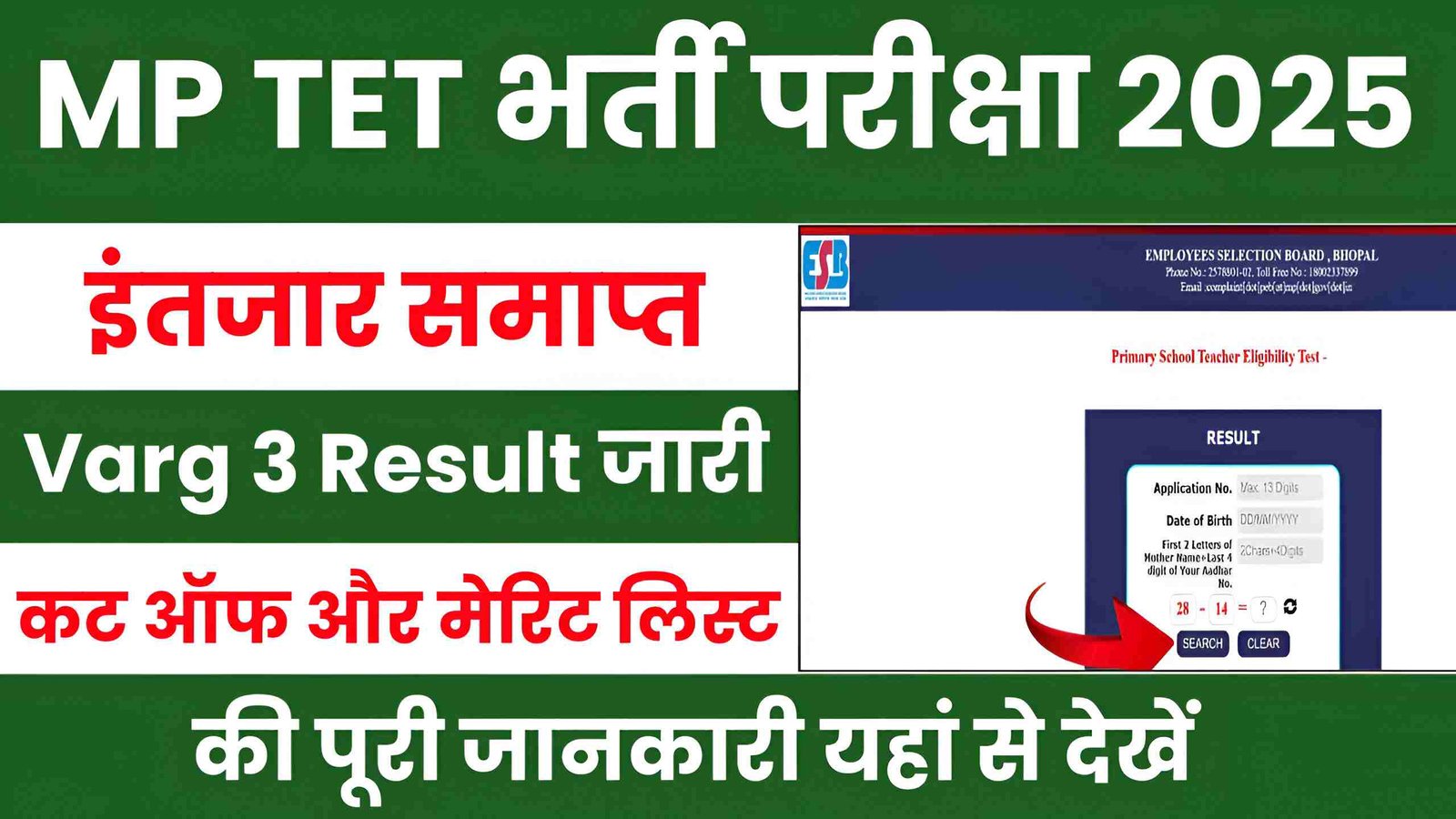हेलो दोस्तों स्वागत है आप सभी का हमारे इस नए आर्टिकल में मध्य प्रदेश के वे सभी उम्मीदवार जो प्राथमिक शिक्षक बनने का सपना देख रहे हैं उनके लिए एक बहुत ही बड़ी खबर है । साथियों अगर आपने भी वर्ष 2025 में मध्य प्रदेश टीचर एलिजिबिलिटी टेस्ट वर्ग 3 का परीक्षा में शामिल हुए थे तो आज का या आर्टिकल आपके लिए ही है ।