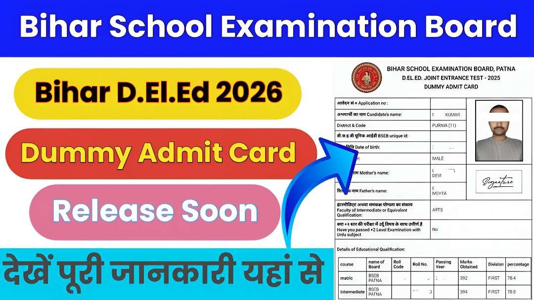 Bihar D.El.Ed Dummy Admit Card 2026: BSEB द्वारा D.El.Ed का डमी एडमिट कार्ड किया गया जारी देखें यहां से